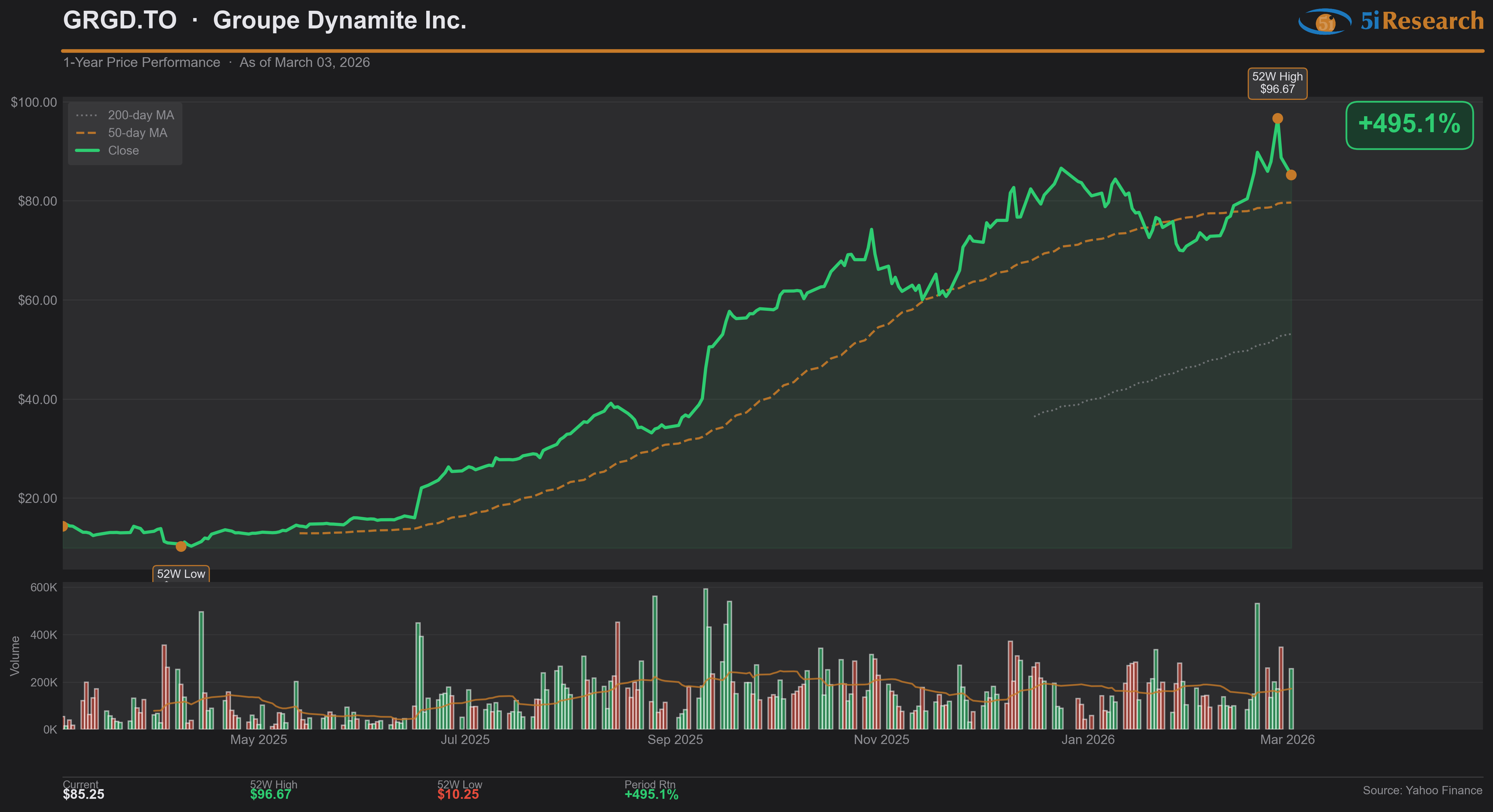 The company operates a dual-banner retail concept targeting Millennial and Gen Z women through its Garage and Dynamite store formats across North America. GRGD hits our screen on accelerating comparable store sales momentum that extended through the holiday quarter and into early calendar year, paired with expanding profitability as the business scales its refreshed store concept and prepares for international expansion. Investors are rotating into Canadian consumer discretionary names demonstrating pricing power and market share gains despite cautious consumer sentiment, with GRGD standing out as a rare growth story in an otherwise defensive TSX retail cohort.